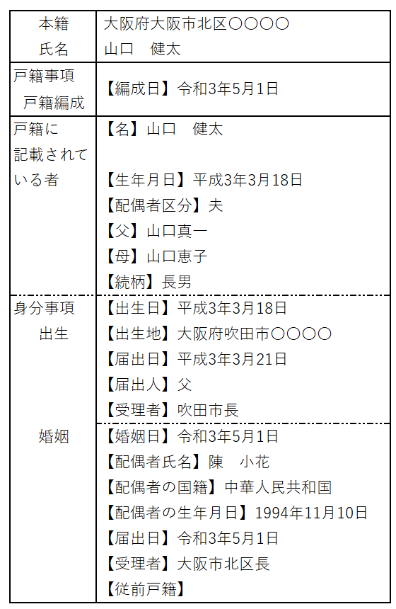 日本人同士が結婚をした場合は、夫婦の新しい戸籍ができますが、国際結婚の場合は、日本人配偶者1人の戸籍が作成されることになります。